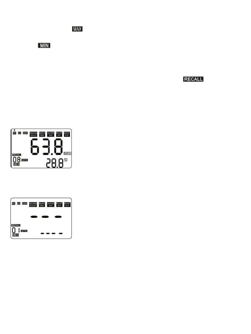 • Pressing the MAX/MIN button once displays the highest reading