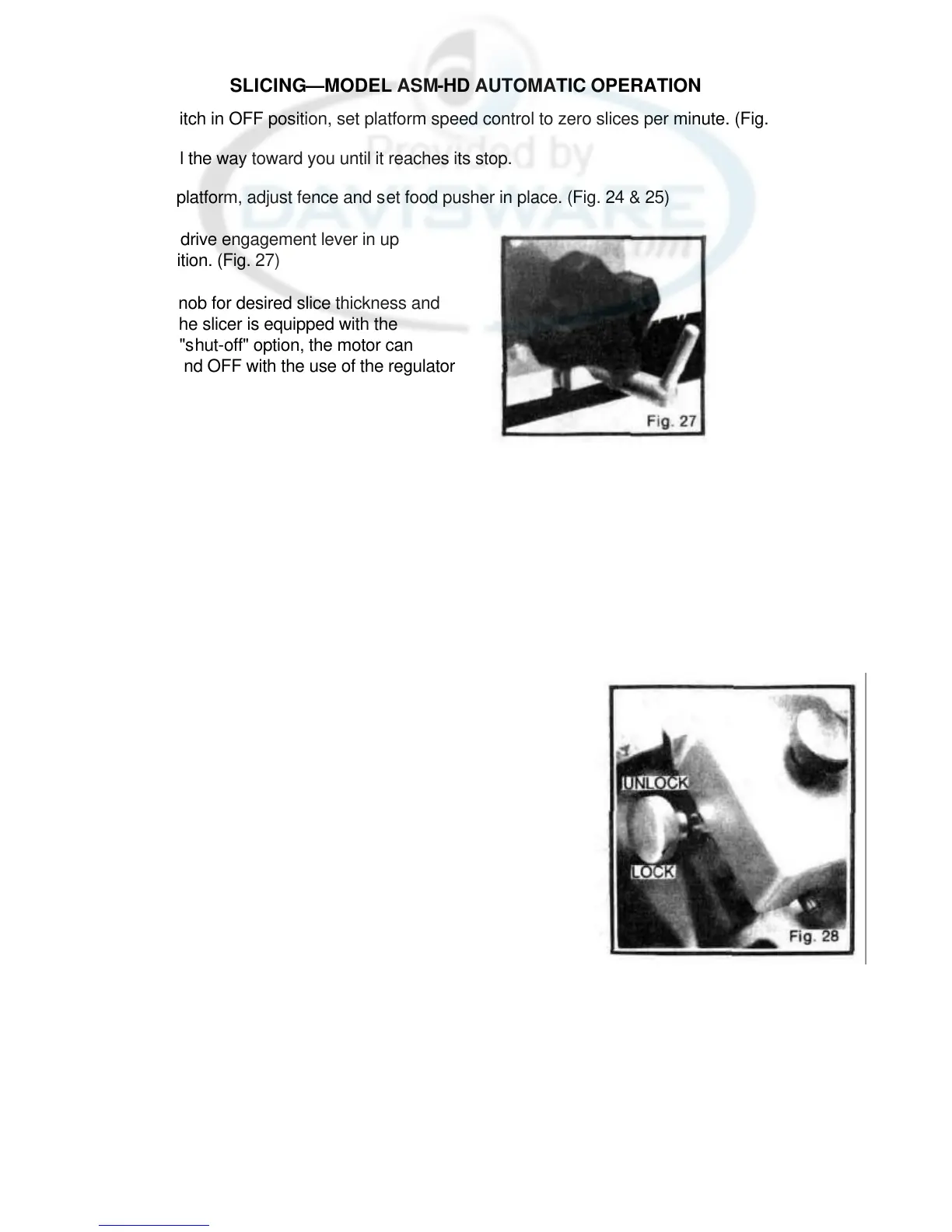 3. Place food on platform, adjust fence and set food pusher in place. (Fig. 24 & 25)