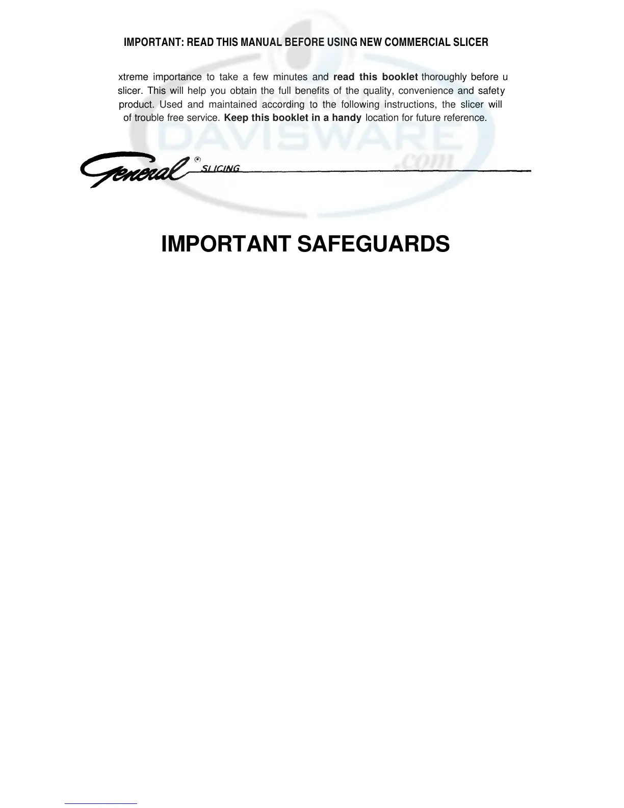 IMPORTANT: READ THIS MANUAL BEFORE USING NEW COMMERCIAL SLICER