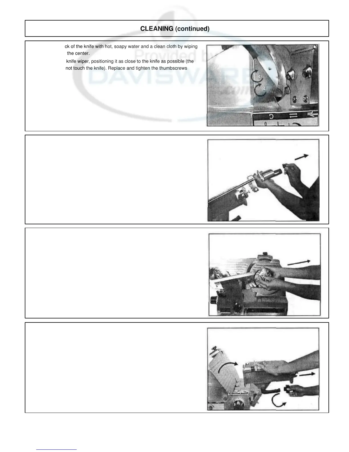 wiper should not touch the knife). Replace and tighten the thumbscrews