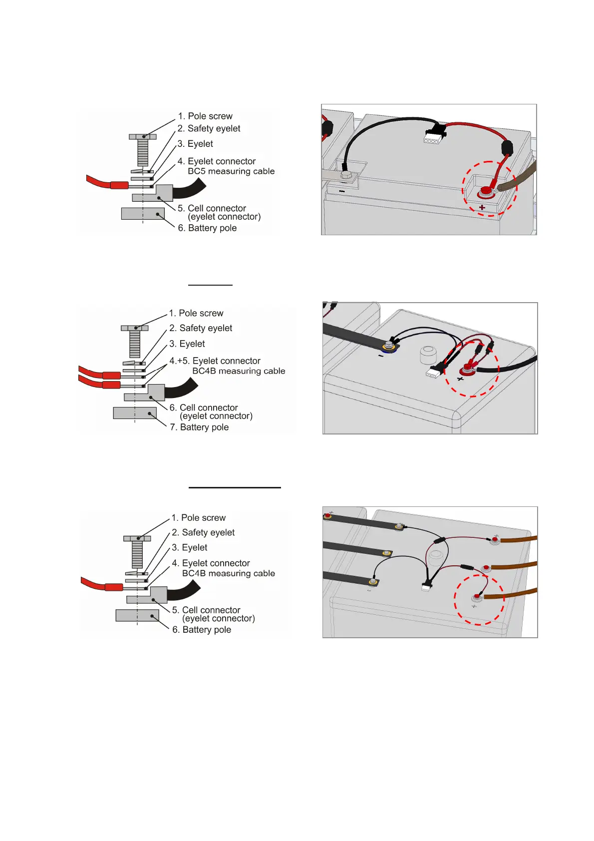 Note: If the battery has more than 4 poles, it is sufficient to connect the BACS cable to four battery poles (Use