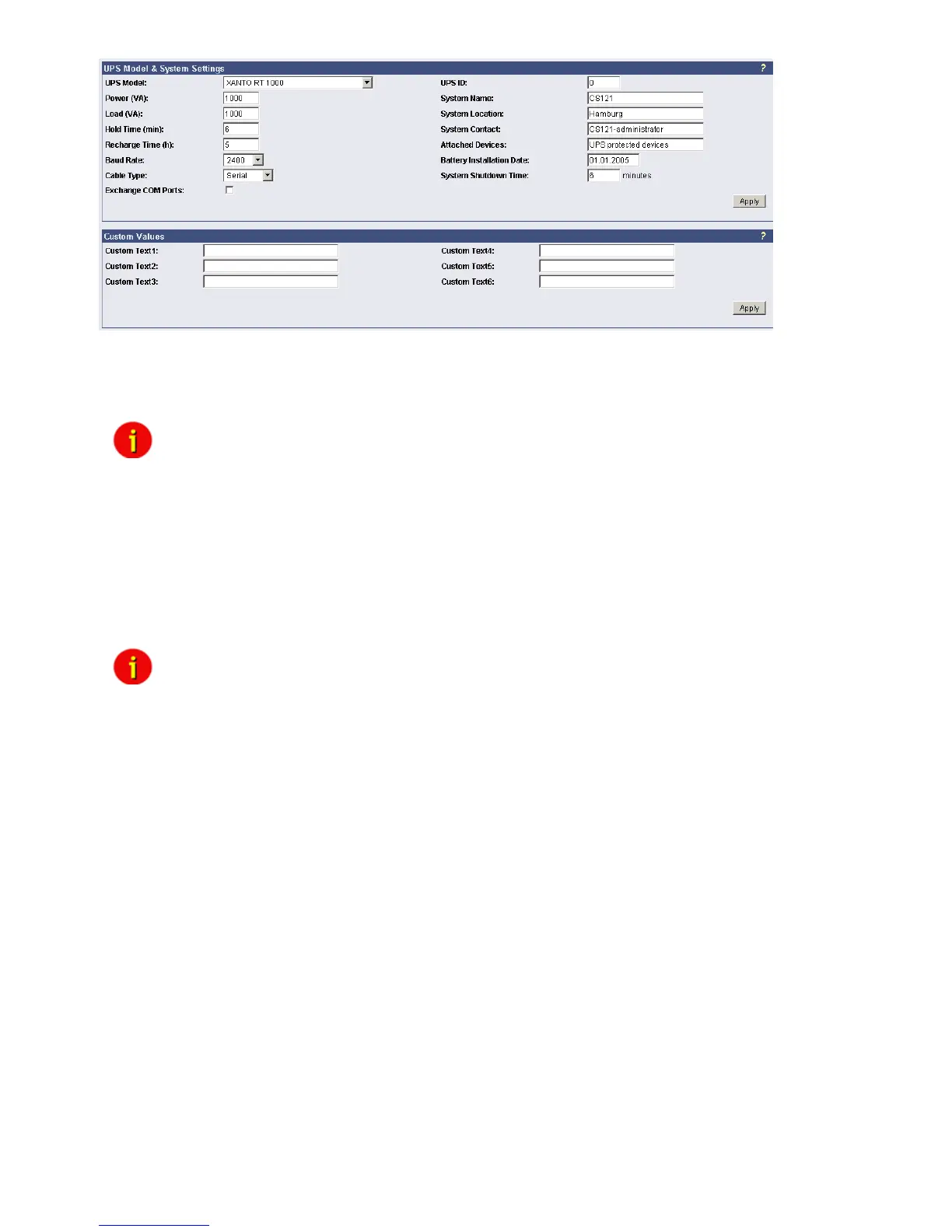 Note: Do not change the default UPS-Parameters for Baud Rate and Hold time