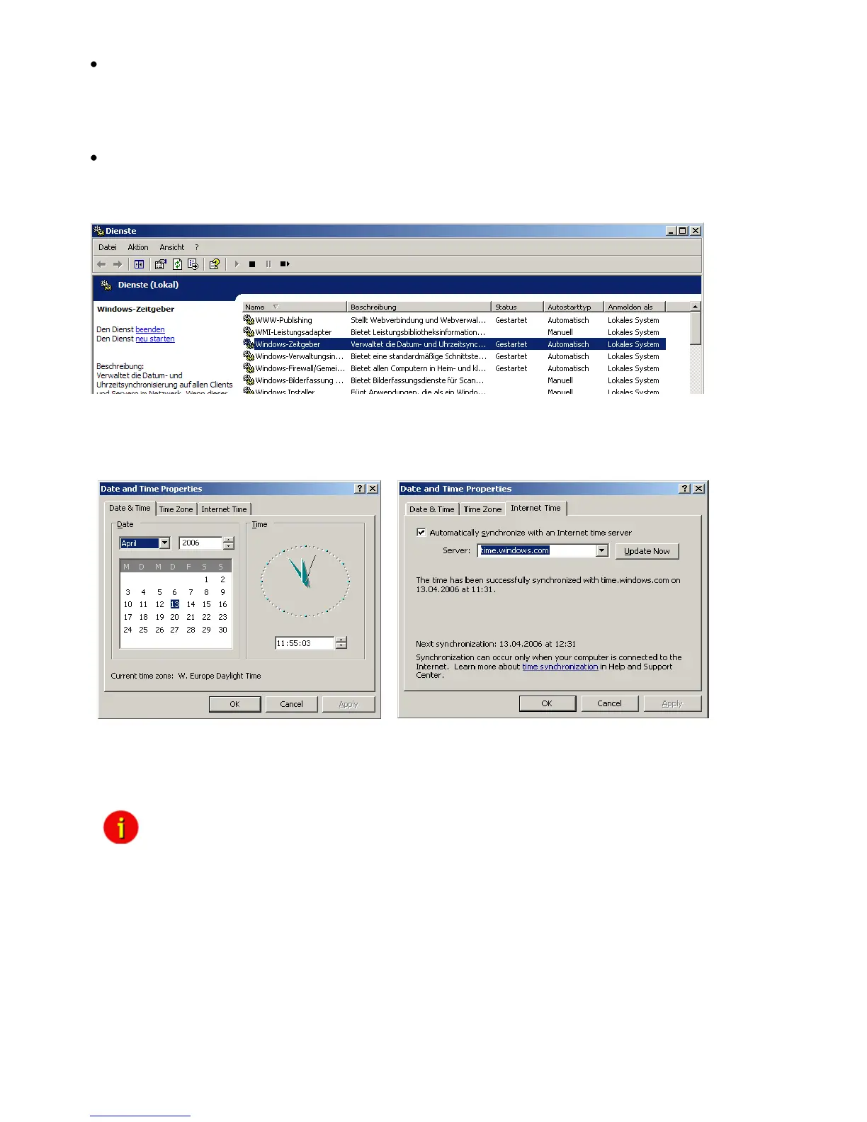 Click on “Internet Time” and check if the timeserver you have chosen here works correctly.
