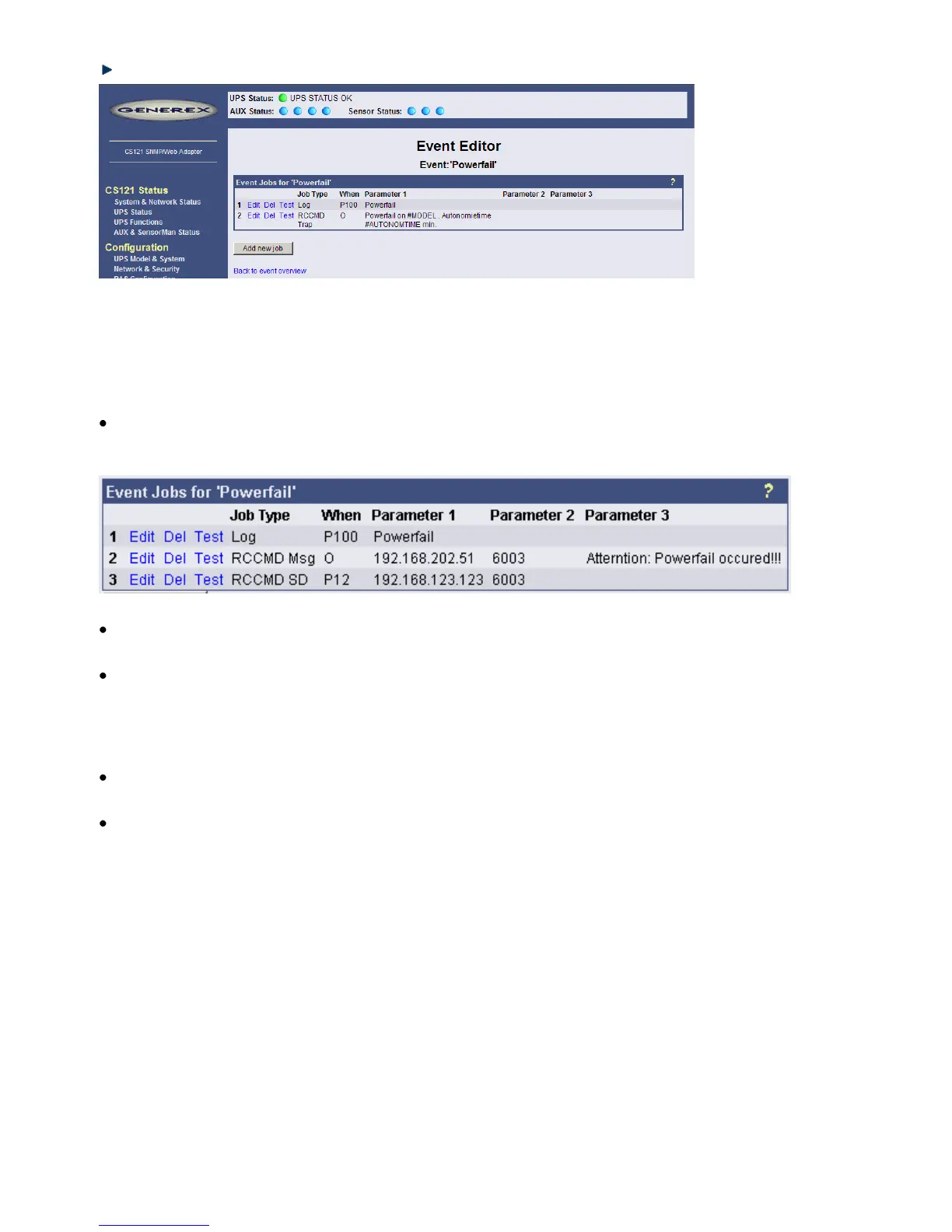 Additionally, all Actions of the Event “Powerfail” should also be entered in the Event “Battery