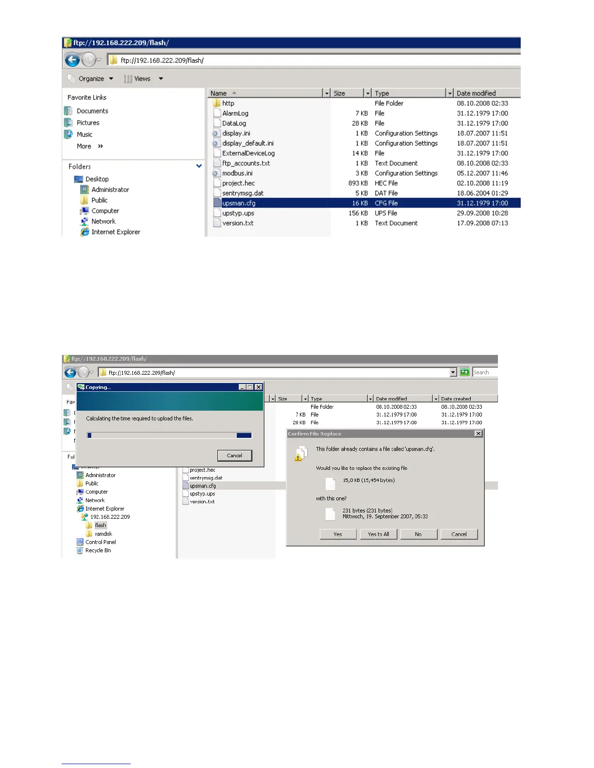 Now you can overwrite the „upsman.cfg“ into the „flash“ folder via ftp.