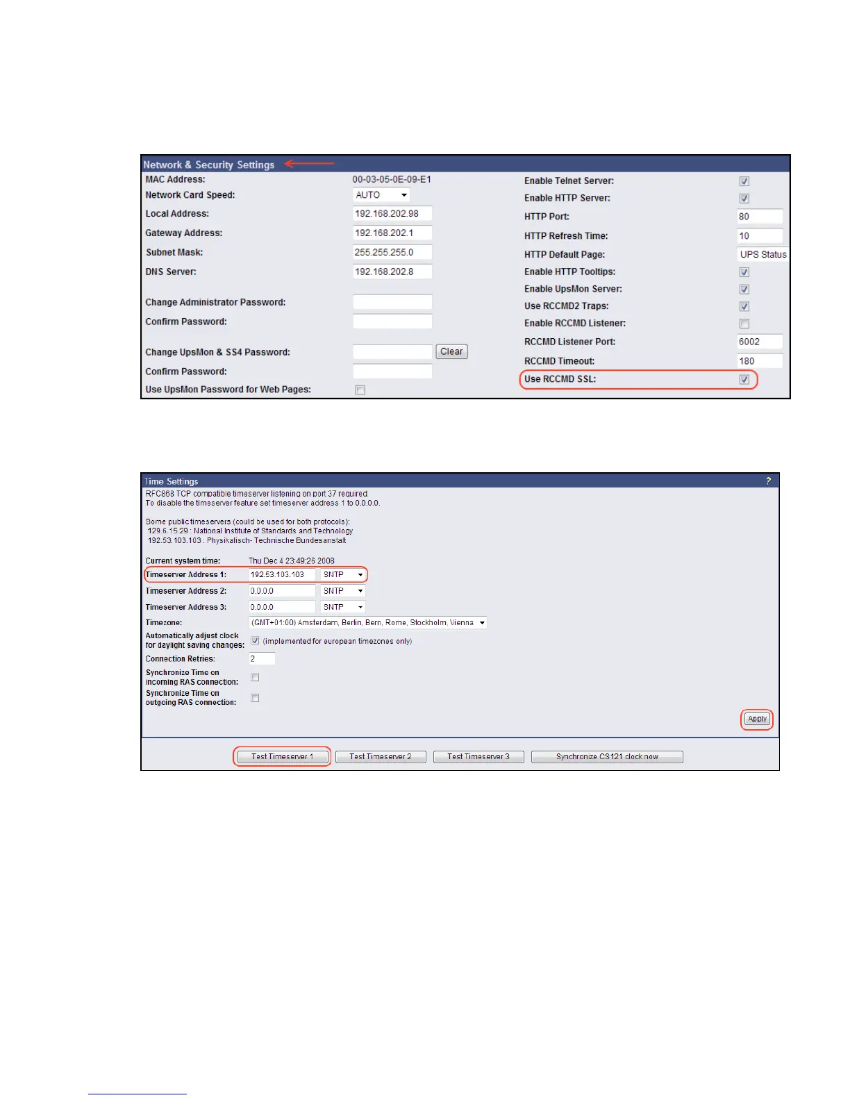 Figure 85: Timeserver Settings