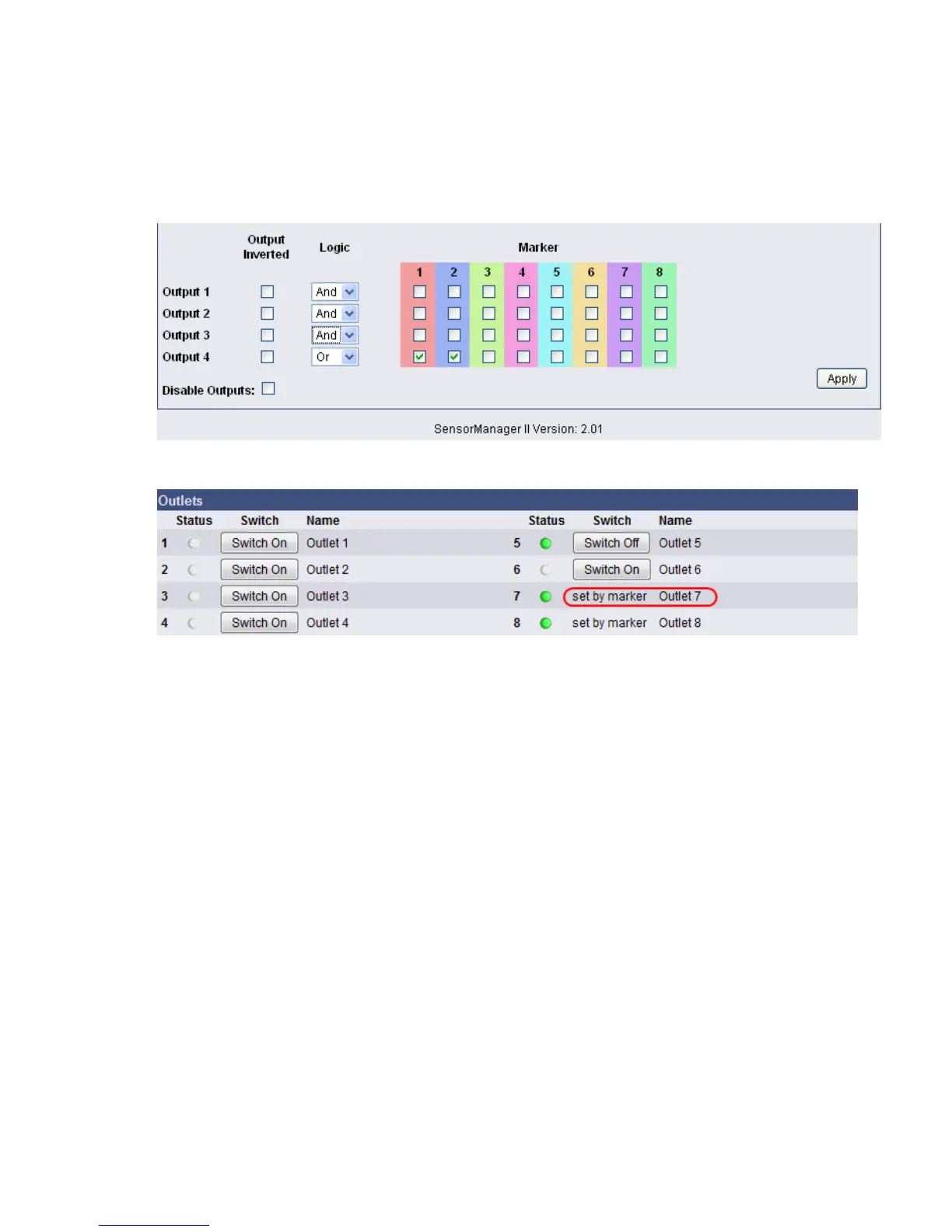 that Output 4 is to be switched on when Marker 1 or Marker 2 is set (or the opposite way