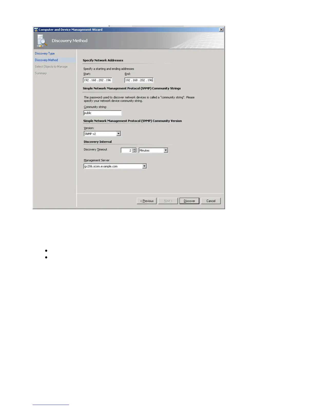 On the Select Objects to Manage page, select the devices desired for management.