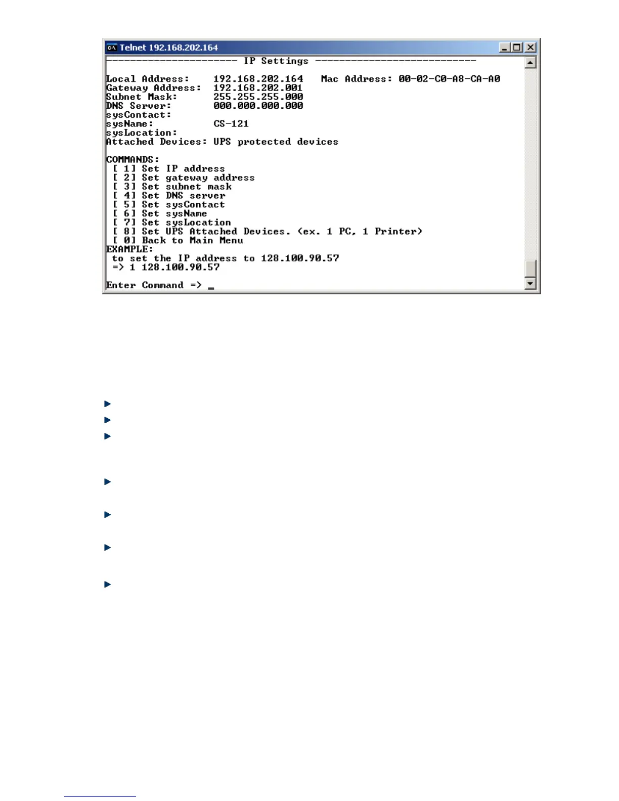 For example: To assign the IP-address of the SNMP-adapter, the gateway and the subnet