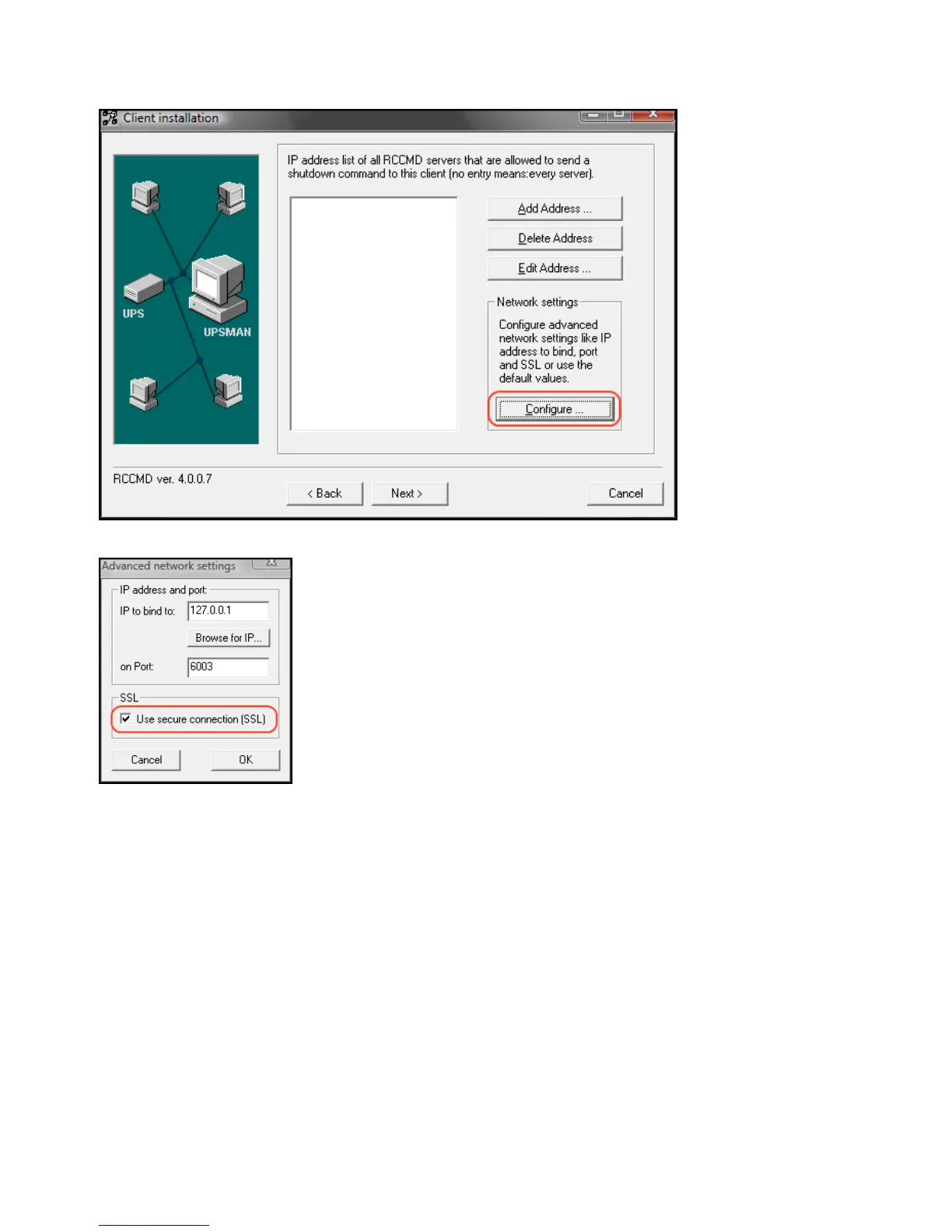 Start the RCCMD Wizard installation again and enable the SSL network feature.