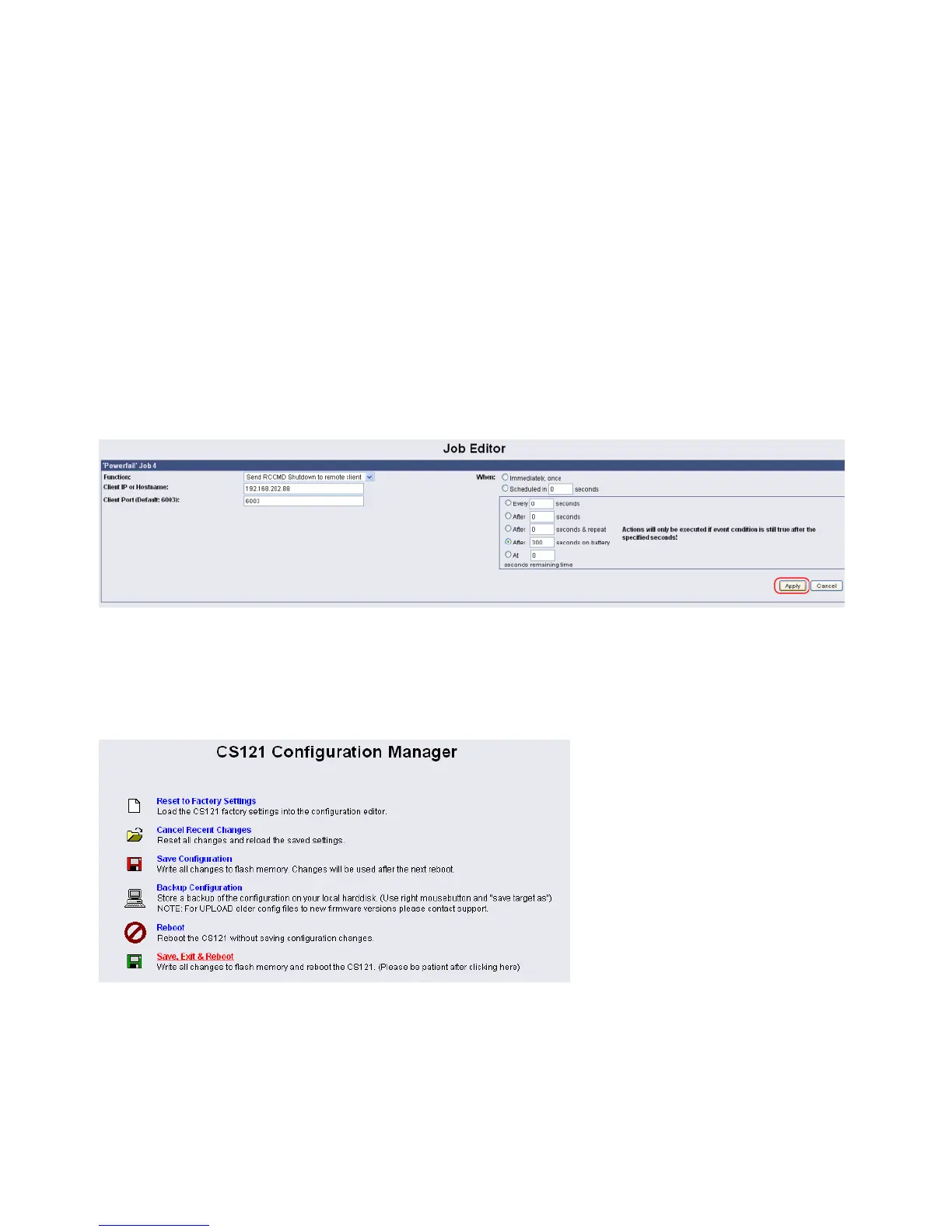 "After x seconds on battery”: Action/Job will be executed in case that the EVENT UPS ON