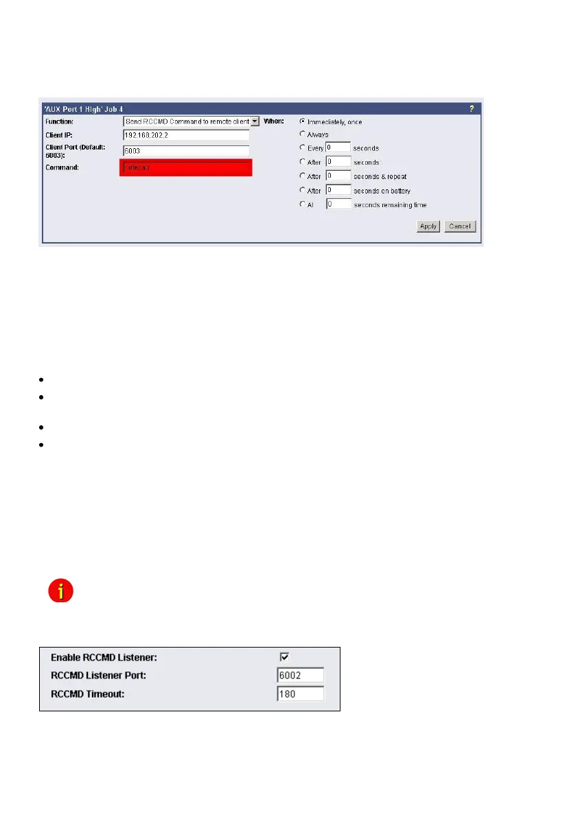 Enable RCCMD Listener and set RCCMD Listener Port in menu “Network & Security”.