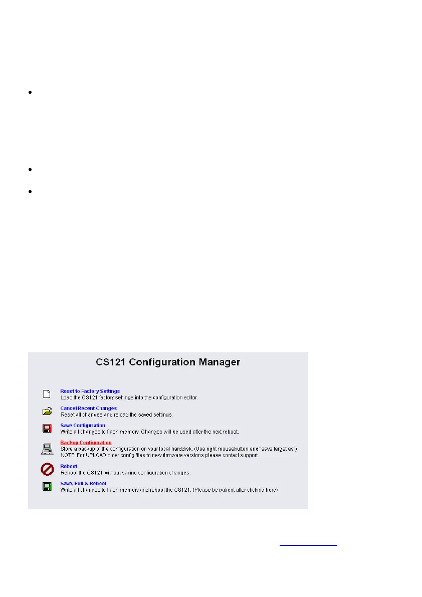 Click on the web-interface of your CS121 into the configuration menu bar the „Save