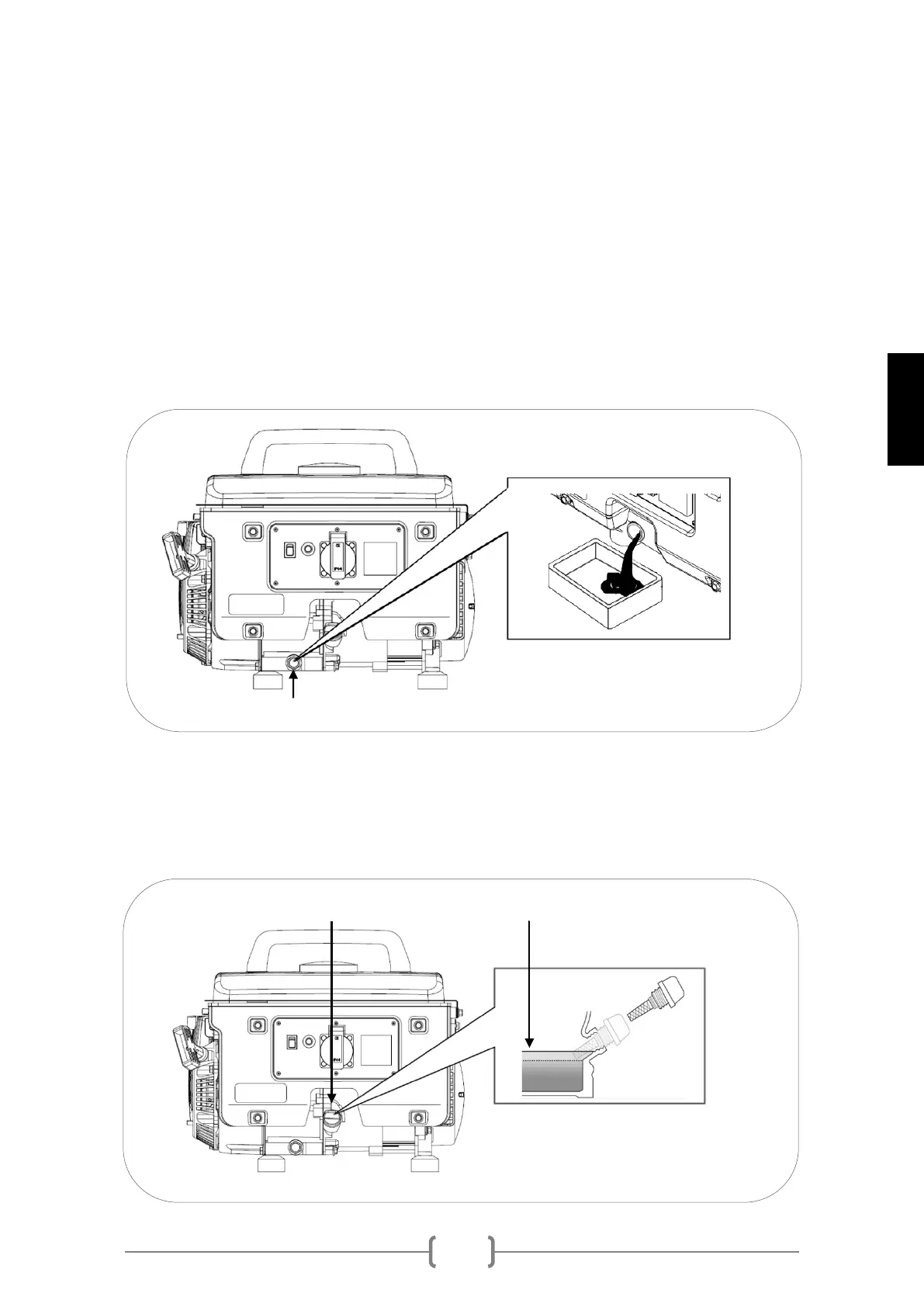 4 Fije el tornillo/tapón de vaciado y abra el tapón de llenado de aceite.