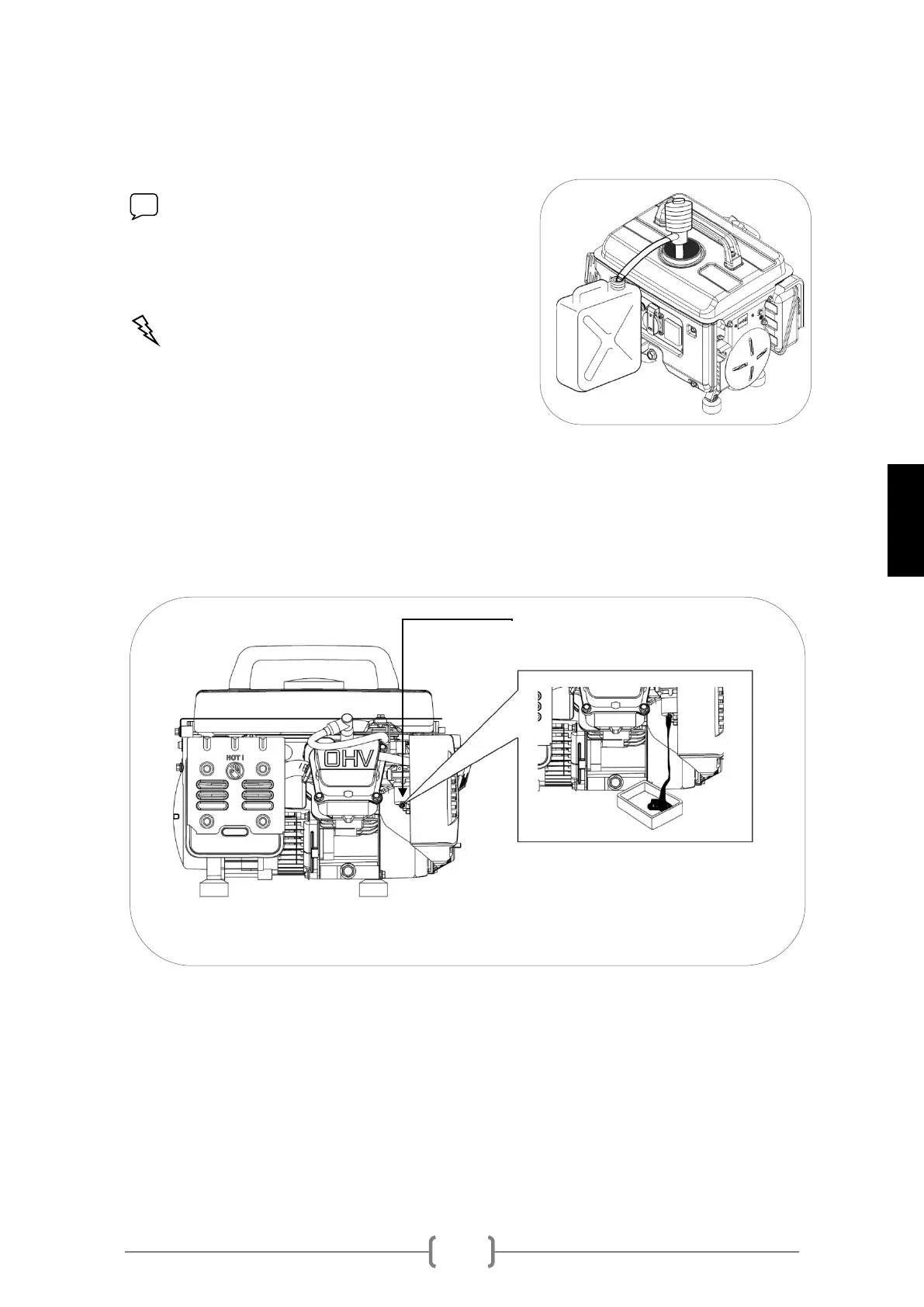 5 Remove the spark plug (see page 22) and pour a tbsp of clean motor oil (10