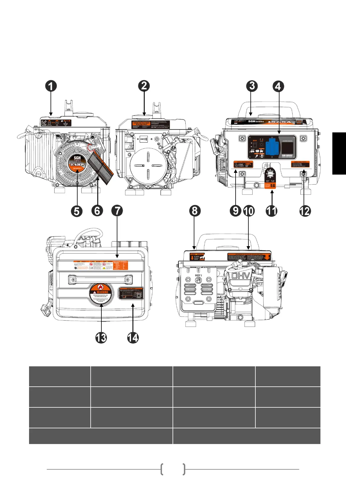 2. Ubicación de los adhesivos de seguridad y uso: