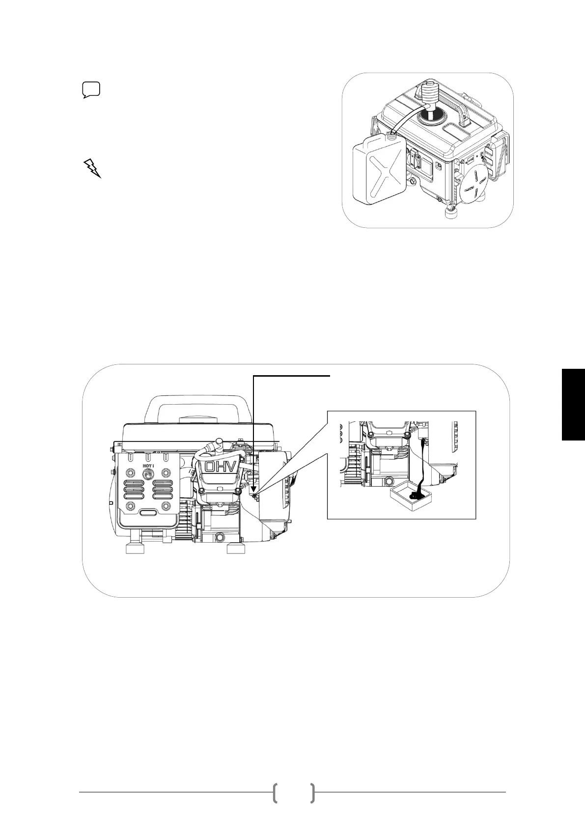 5 Retirar a vela (consultar página 22) e verter um pouco de óleo do motor