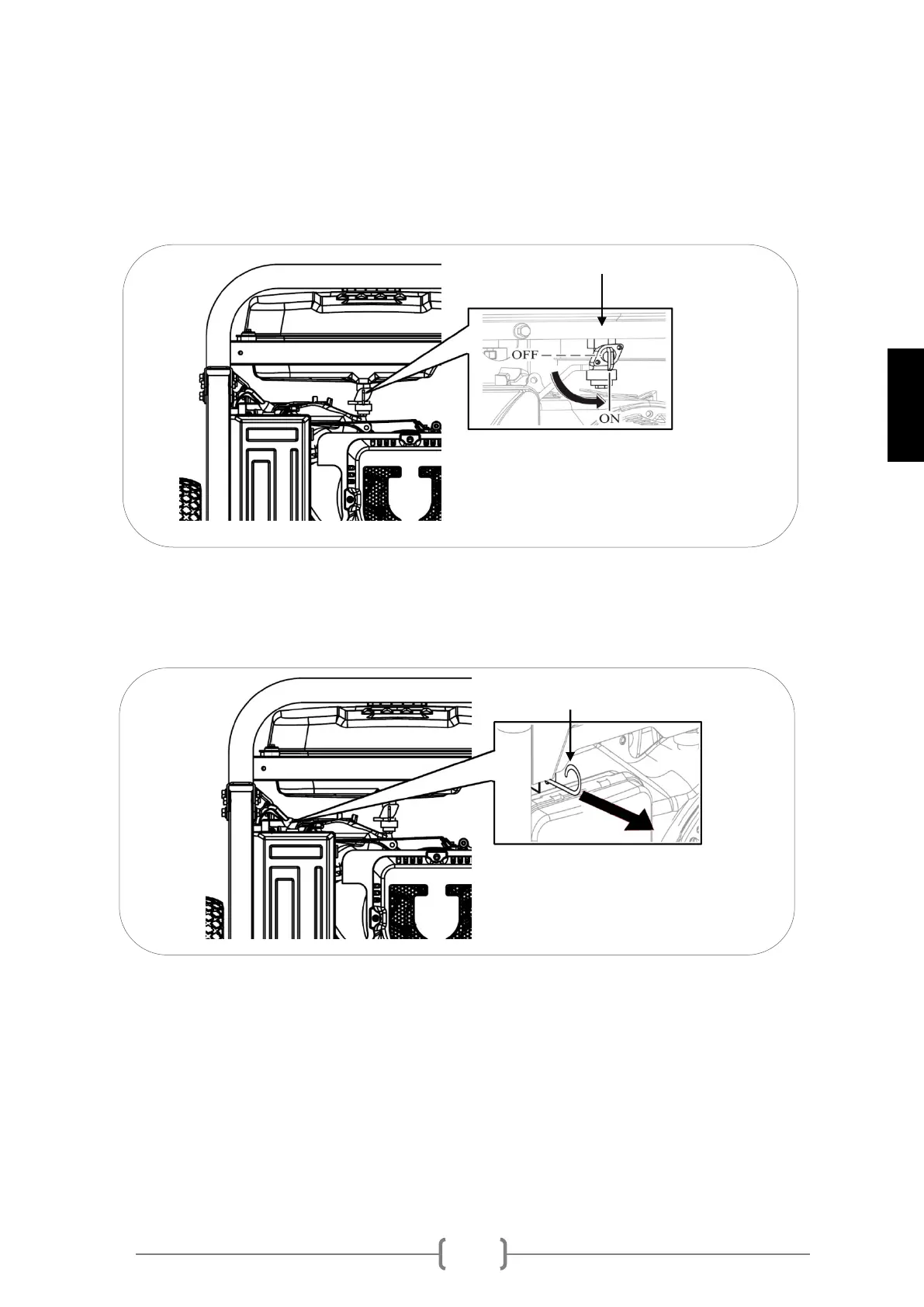 1 Gire la válvula de paso de gasolina a posición “ON”.