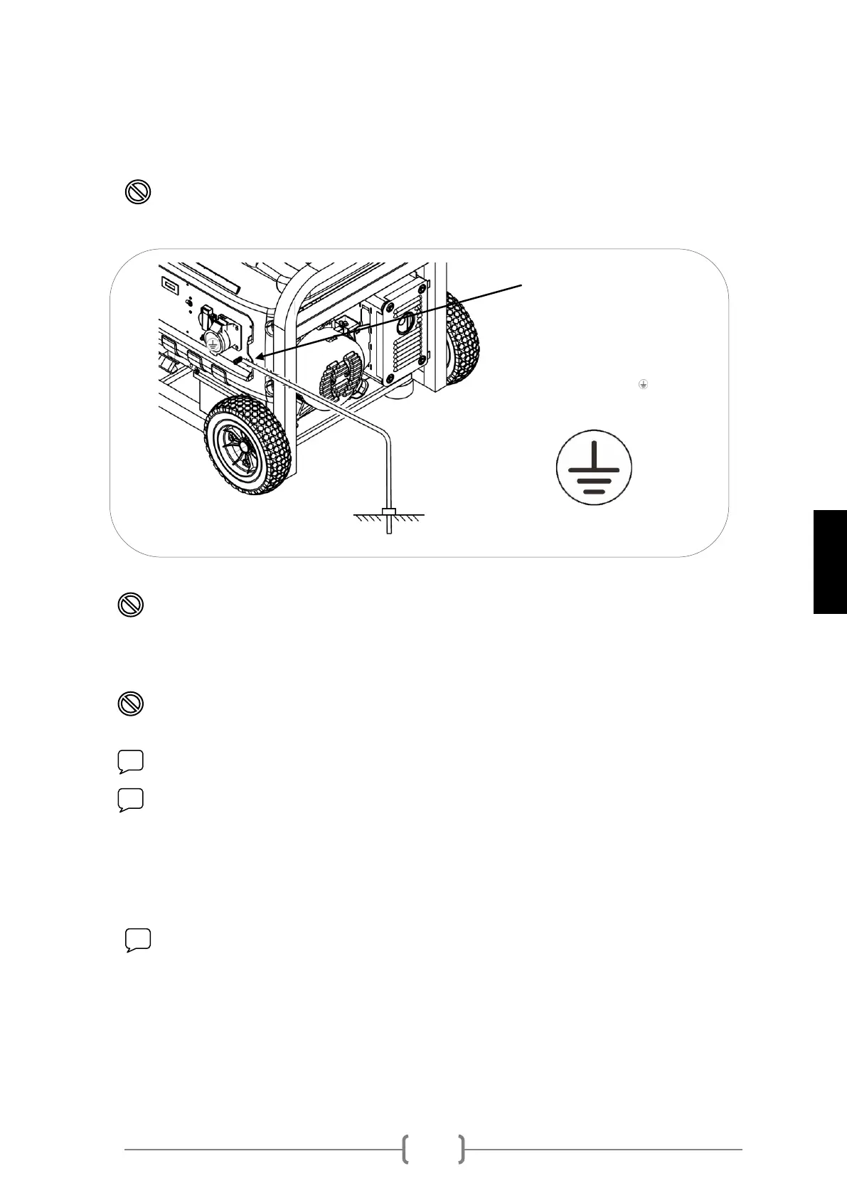 WARNING: Ensure grounding is connected (grounding Rod). Check with an