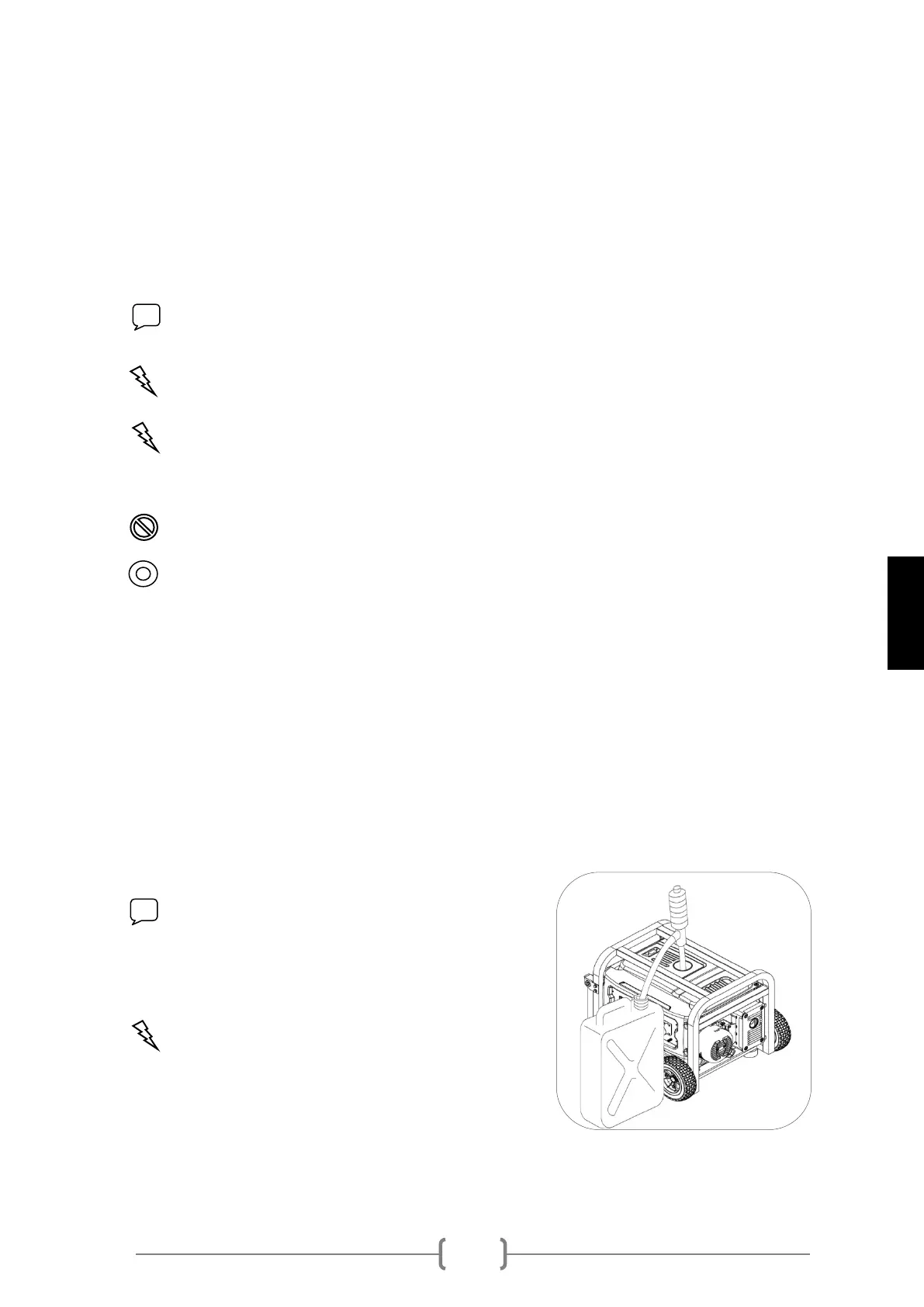 CAUTION: Empty the fuel tank when the generator is transported on a bumpy