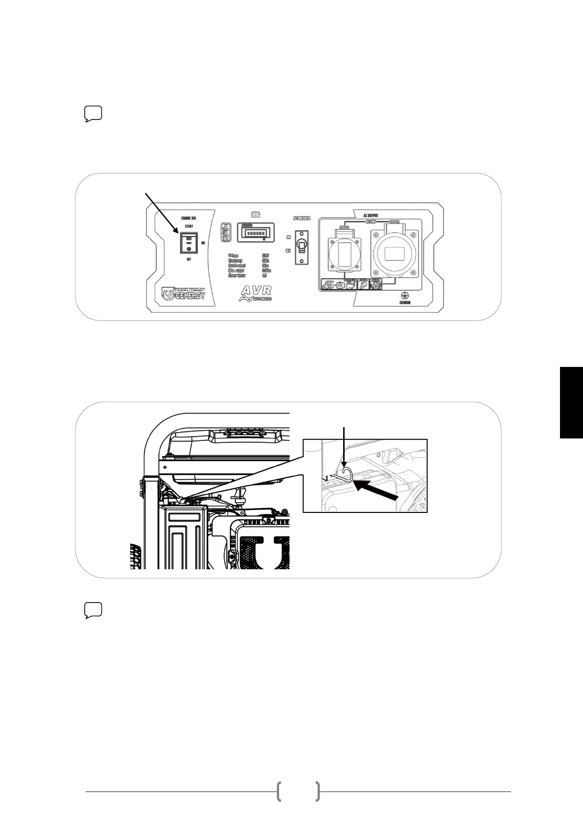 3 Premir o interruptor de arranque do motor para “ON” e depois para “START”,
