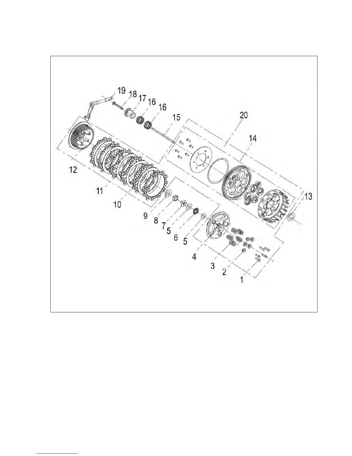 plate 12 Clutch driven hub 13 Thrust washer 14 Clutch driving drum assembly 15 Internal separation
