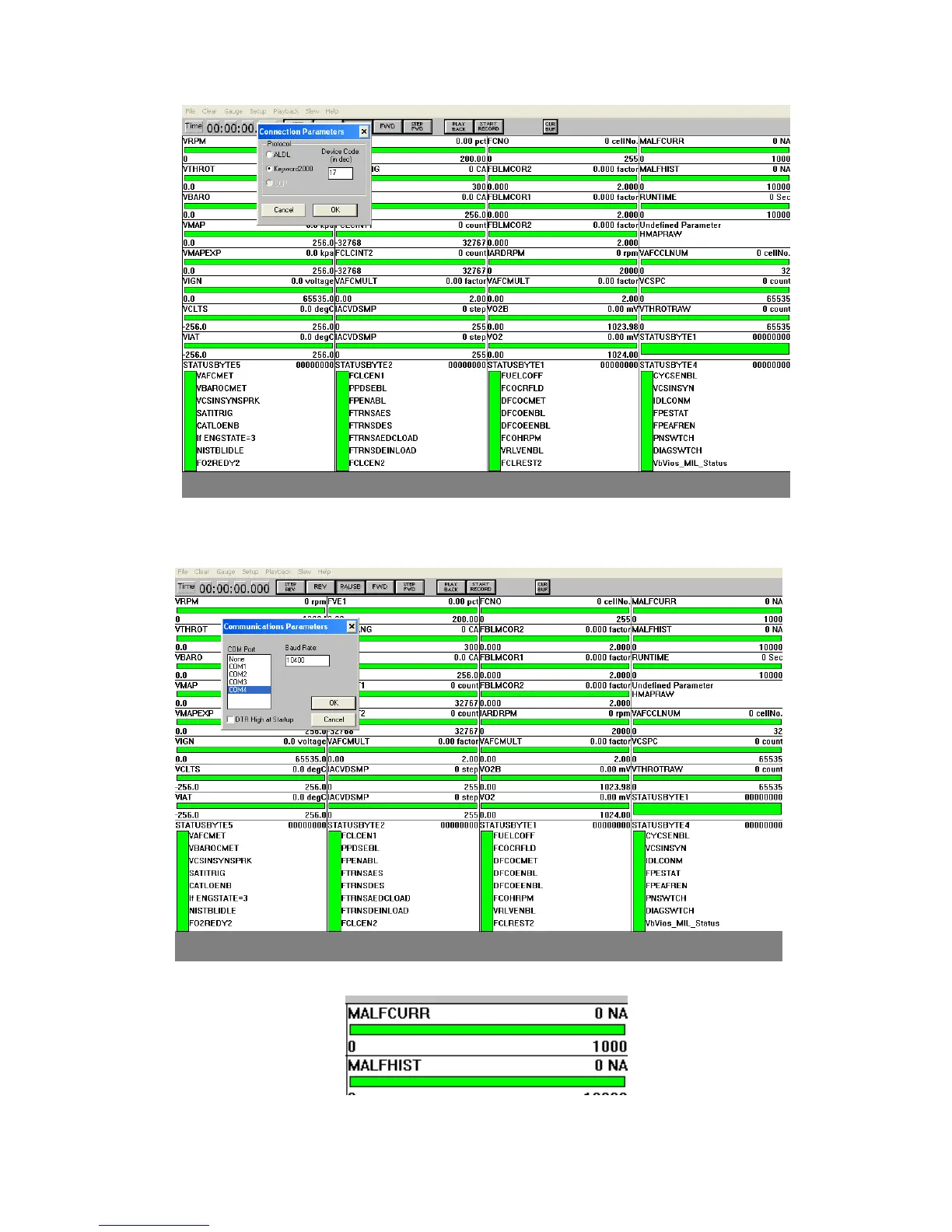 Then it can communicate properly, in the MALFCURR displays the current fault code while history fault