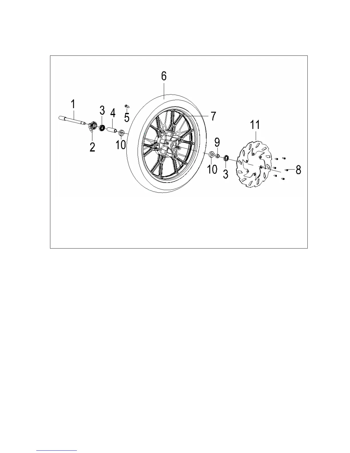 9 Front wheel left shaft sleeve 10 Antifriction bearing 6202-2RS 11 Front brake plate