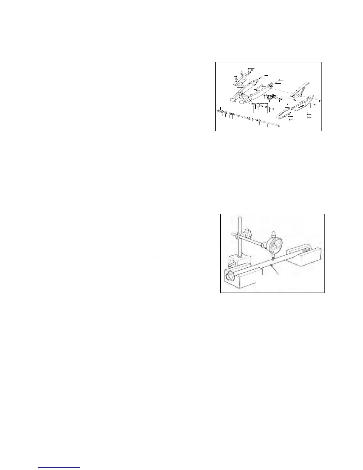 Check rear swing arm installation shaft. Rotate the shaft on a flat