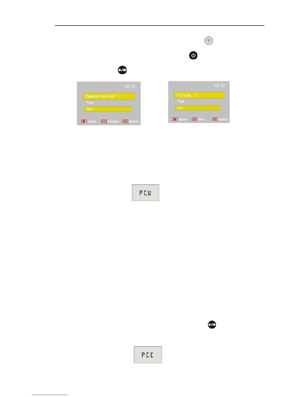 cam mode (PCC mode), and the LCD will display as below: