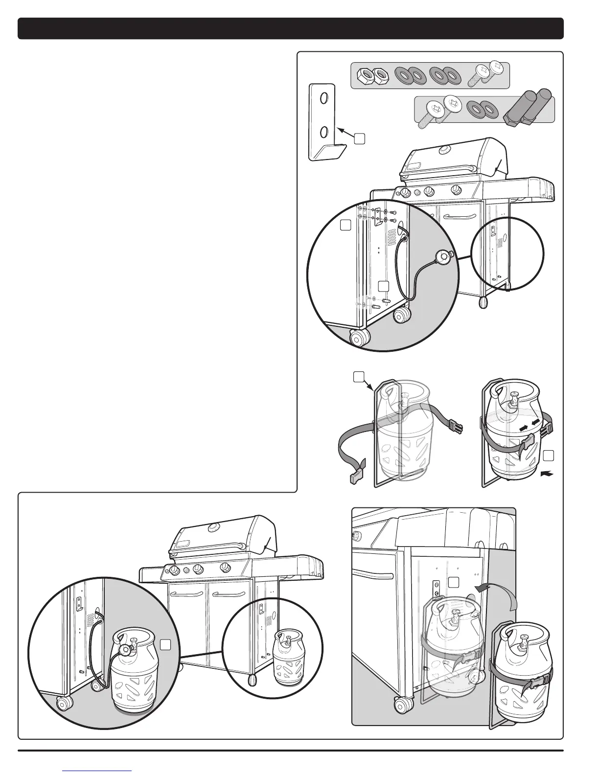 cylinder must be placed outside the base cabinet, on the right side of the grill.