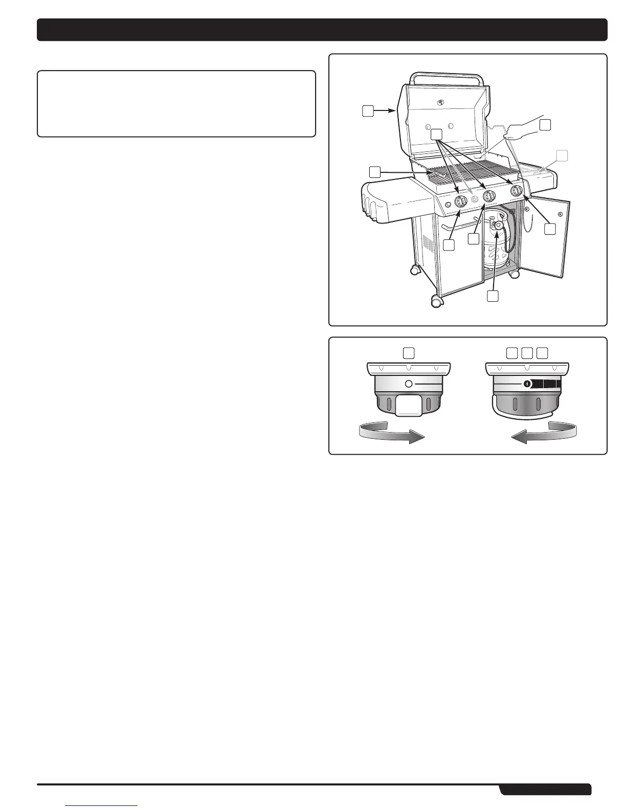 the burner is lit by looking through the cooking grates. You should see a flame (6).