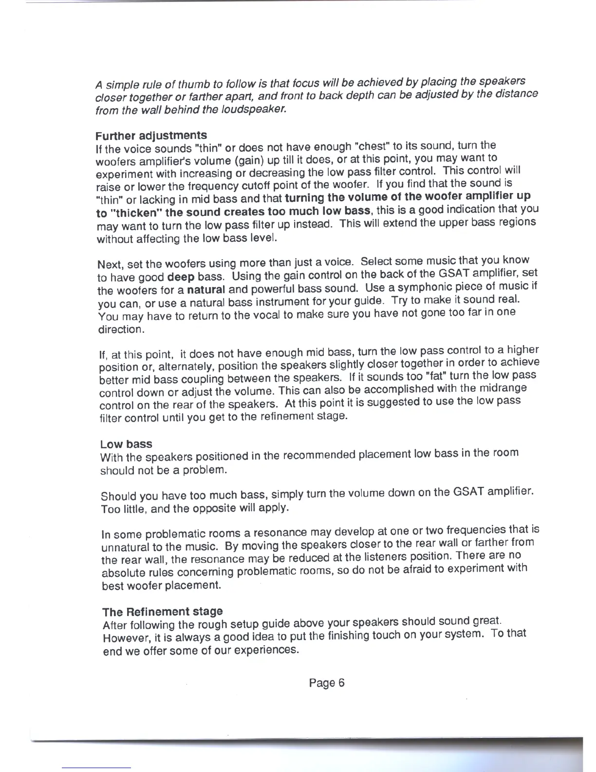Genesis 500 - Further Adjustments; Low Bass; The Refinement Stage