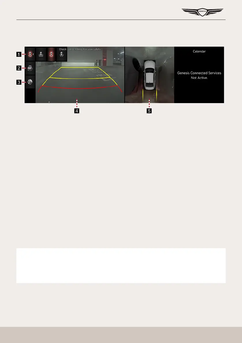 It displays left rear / right rear screen of the vehicle simultaneously.