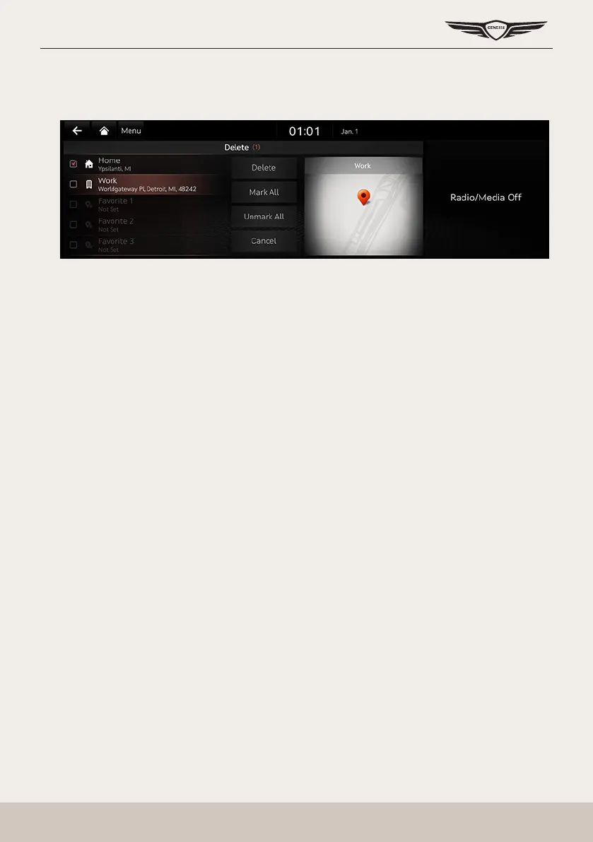 1. Press [Menu] > [Destination] > [Address Book] > [Favorite Places] > [Menu] > [Delete] on