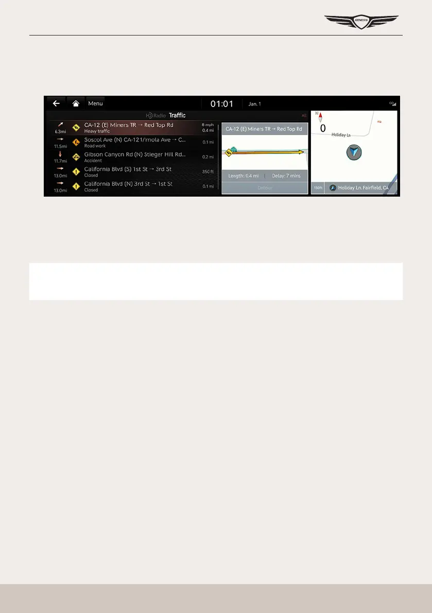 1. Press [HD Radio Data] > [Trafc] on the home screen.