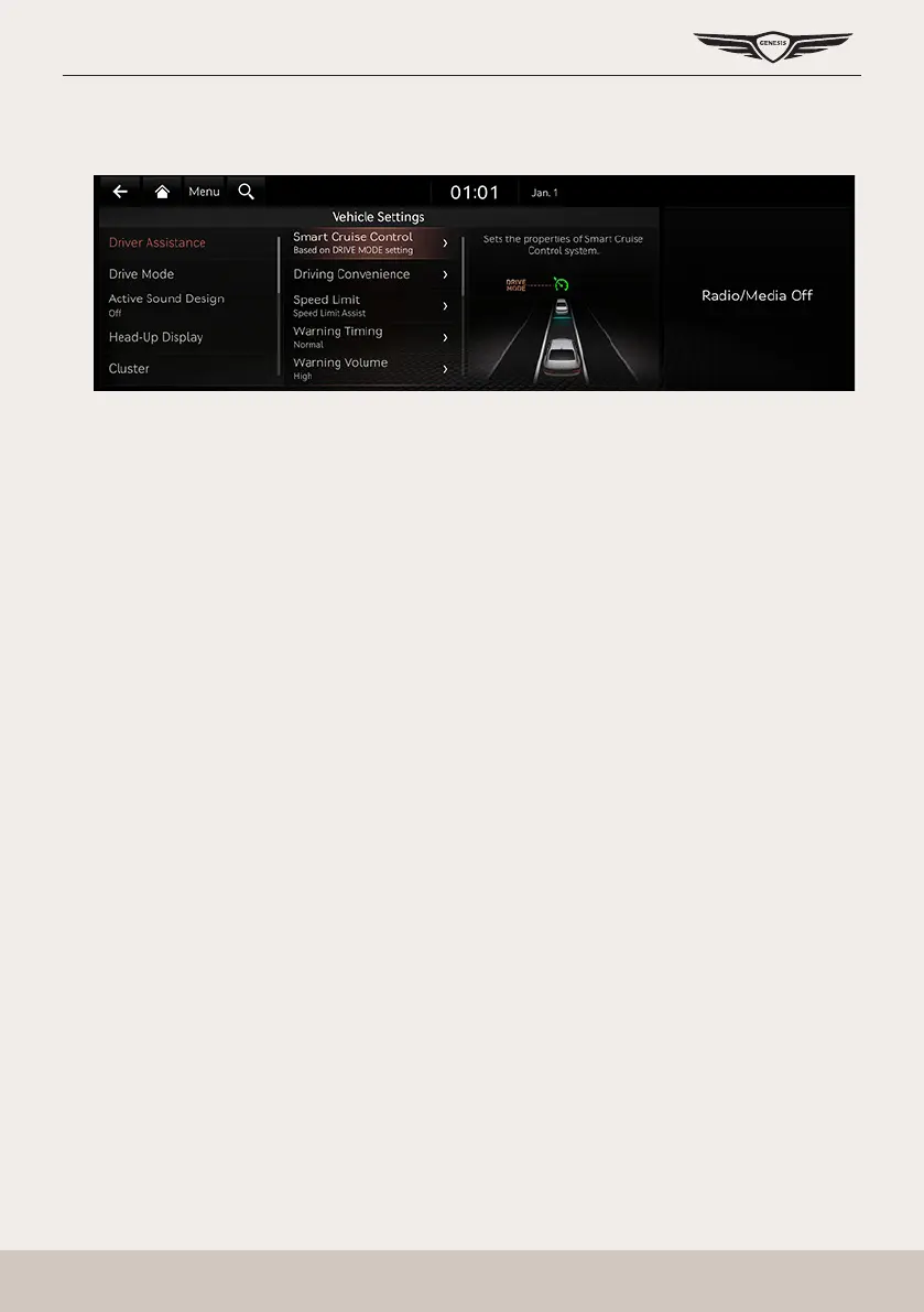 1. Press [Driver assistance] on the vehicle settings screen.