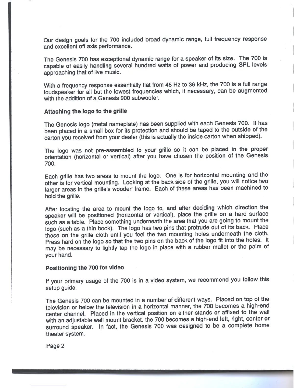 Genesys 700 - Speaker Setup and Positioning; Attaching the logo to the grille; Positioning the 700 for video