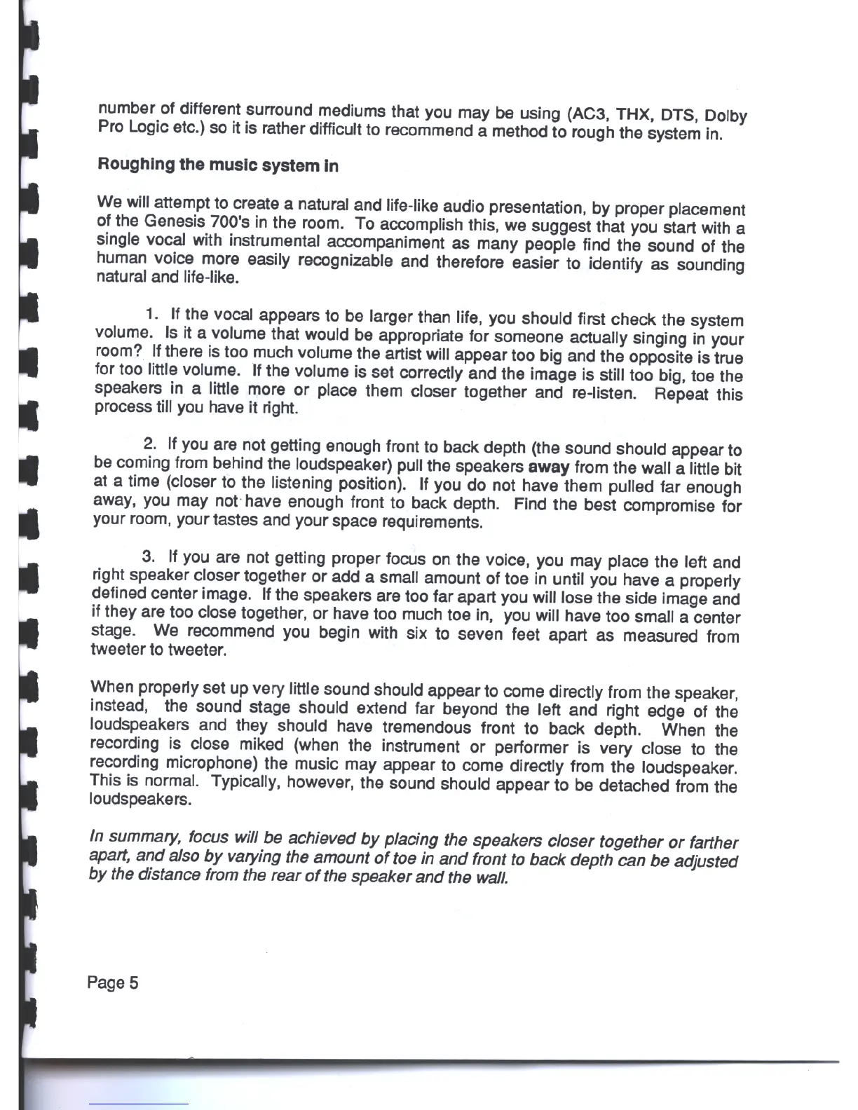 Genesys 700 - Fine Tuning the Soundstage; Roughing the music system in