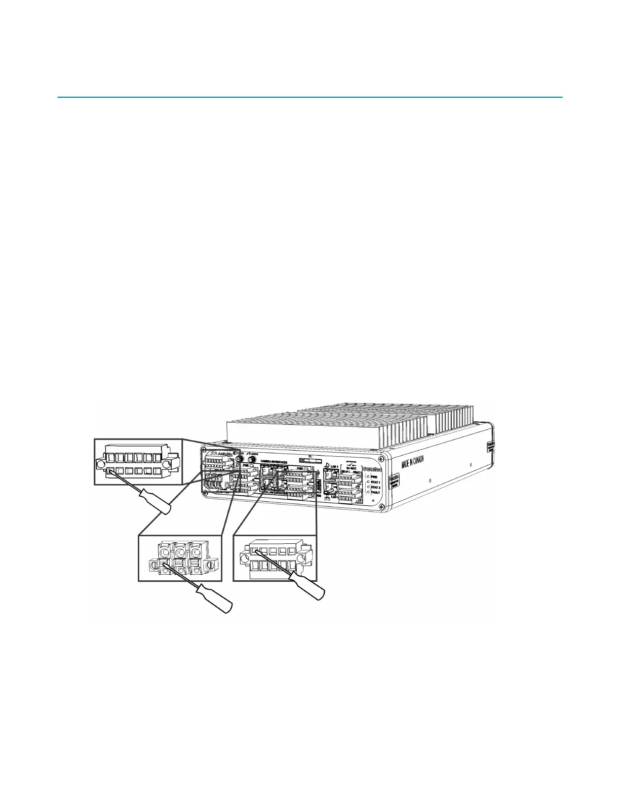 3 Use a 2.5mm flat head screwdriver to push in the tension clamps, insert the required wires into