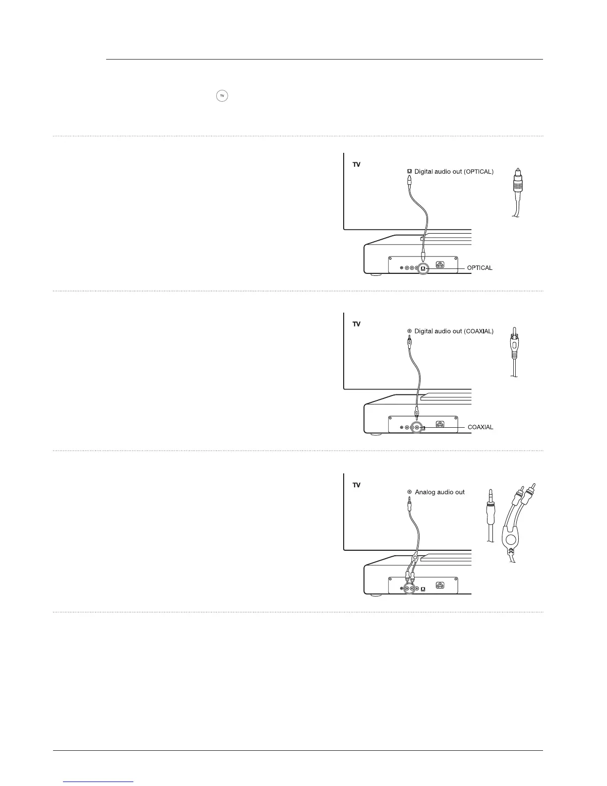Bekijk de output-aansluitingen van uw TV. Selecteer naargelang de beschikbare aansluiting een van onderstaande configuraties.