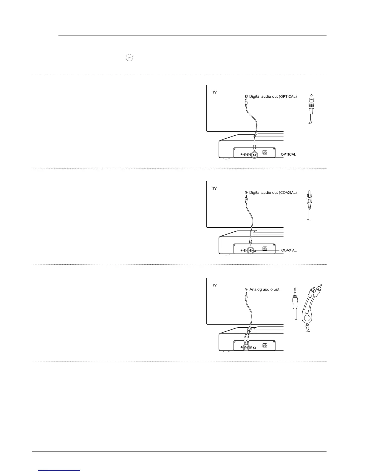 vælge de korrekte TV-indgange. Hvis TV’et har både analoge og digitale udgange, så anbefales digital lyd for at sikre den bedste lydkvalitet.