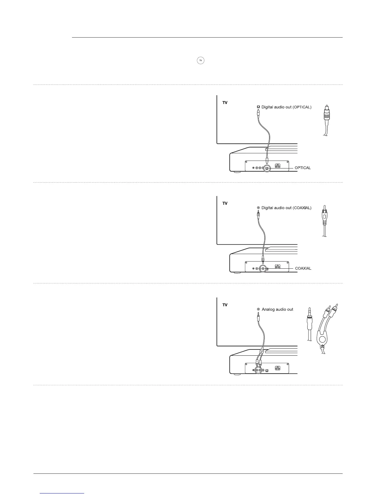 automaattisesti oikeat TV-tulot. Jos TV:ssä on sekä analogiset että digitaaliset audiolähdöt, silloin suosittelemme käyttämään digitaalista liitäntää