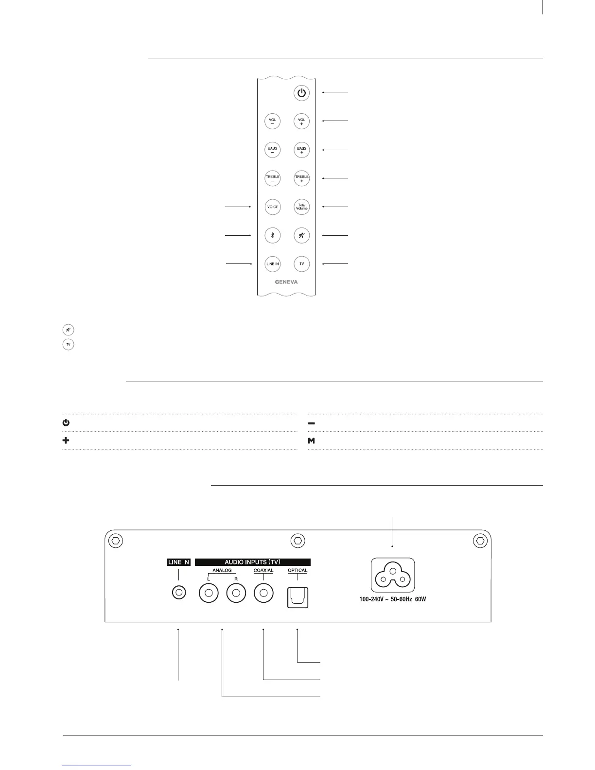 Altera as fontes de áudio: TV, Bluetooth, Line In