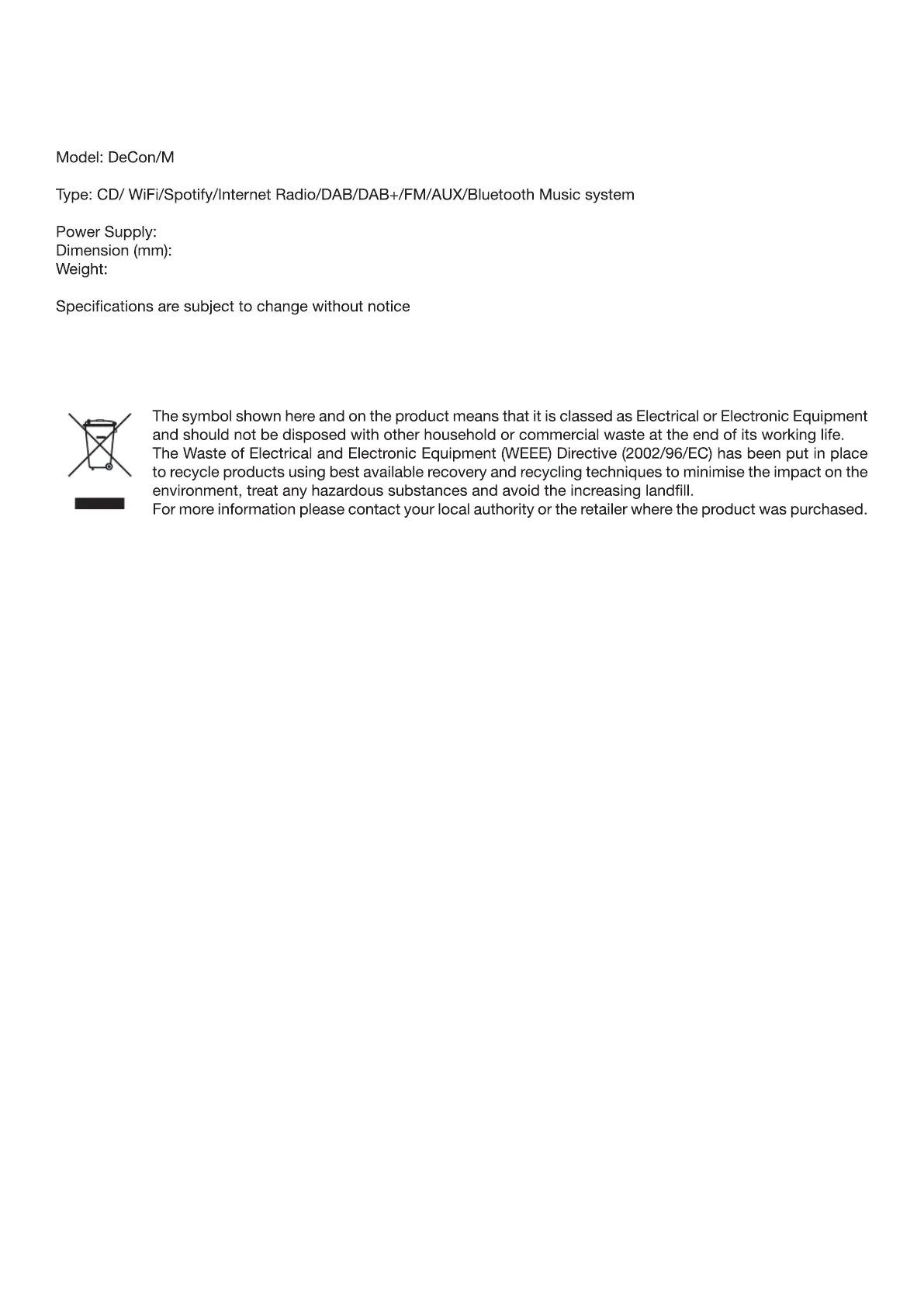 Product disposal instructions (weee directive)