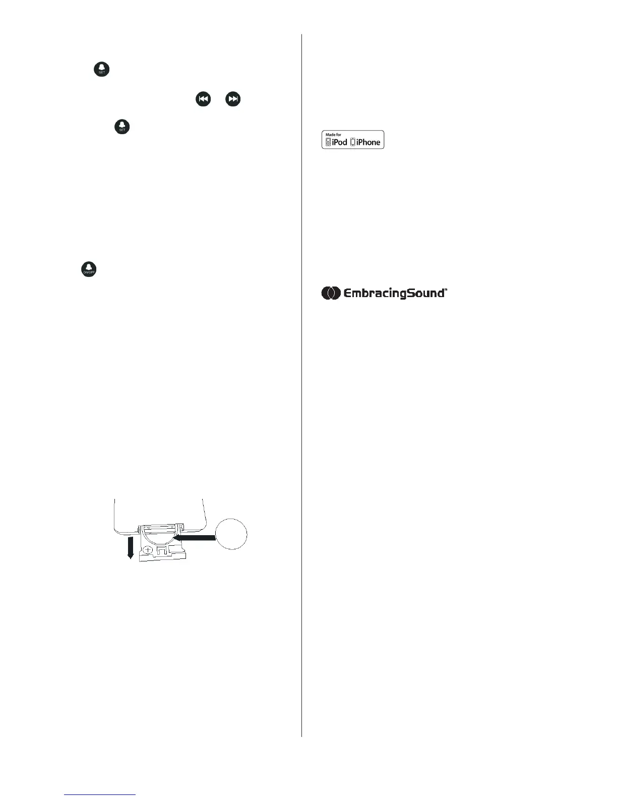 mode, the alarm will awaken in iPod mode; if in FM it will awaken