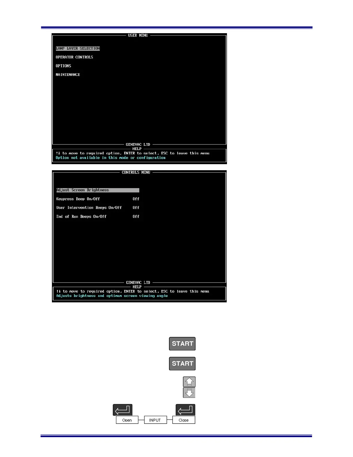 software control screen, press START to