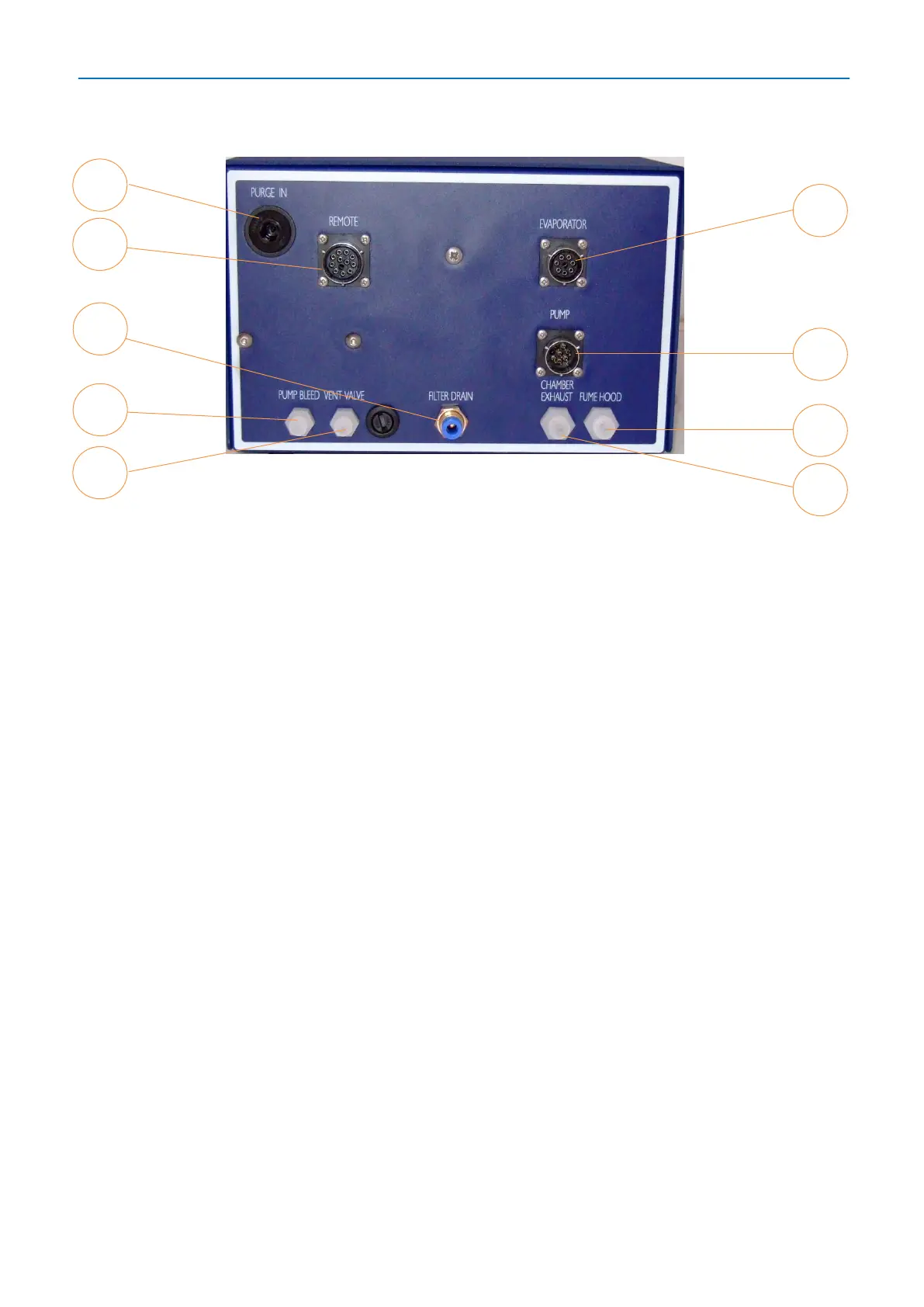 8. FUME HOOD: Expels purge gas and fumes from evaporator - connect to a suitable