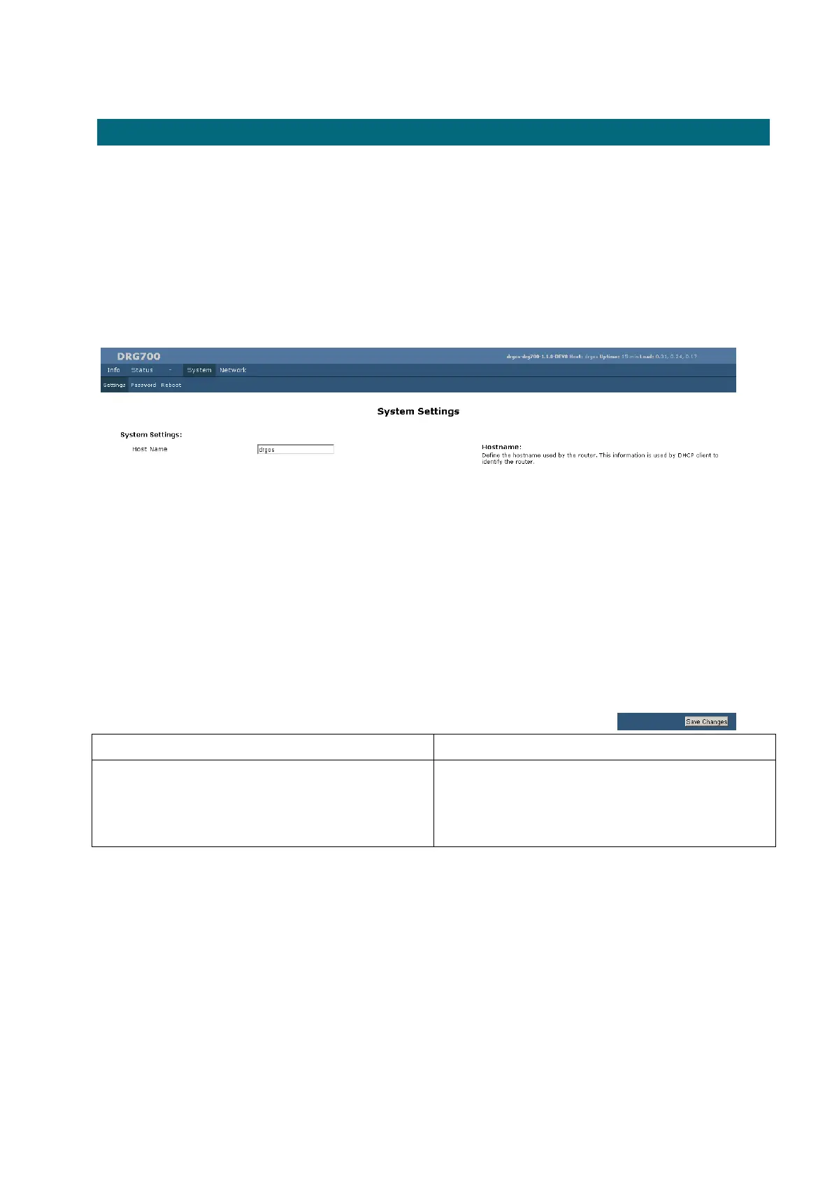 To save the new host name for the DRG700, click Save Changes.