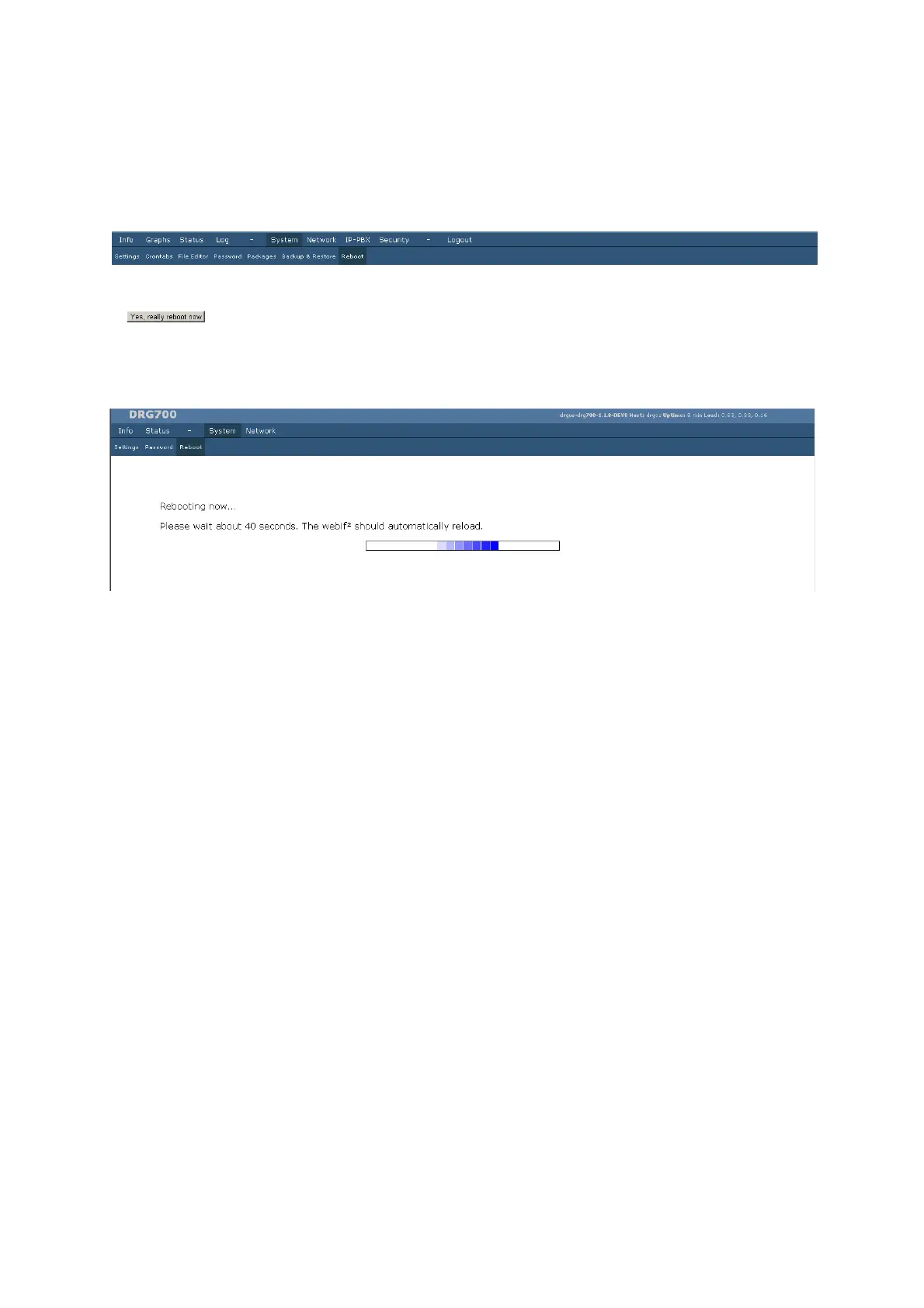 Click the button to confirm the reboot. The DRG700 will now restart.